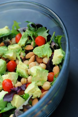 Your salad has to be hearty enough that you feel full afterward. Try adding some avocado, beans and nuts.